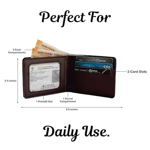 - Smart Storage Design – Includes 2 cash compartments, 3 card slots, 1 ID window, and 1 hidden compartment for convenience